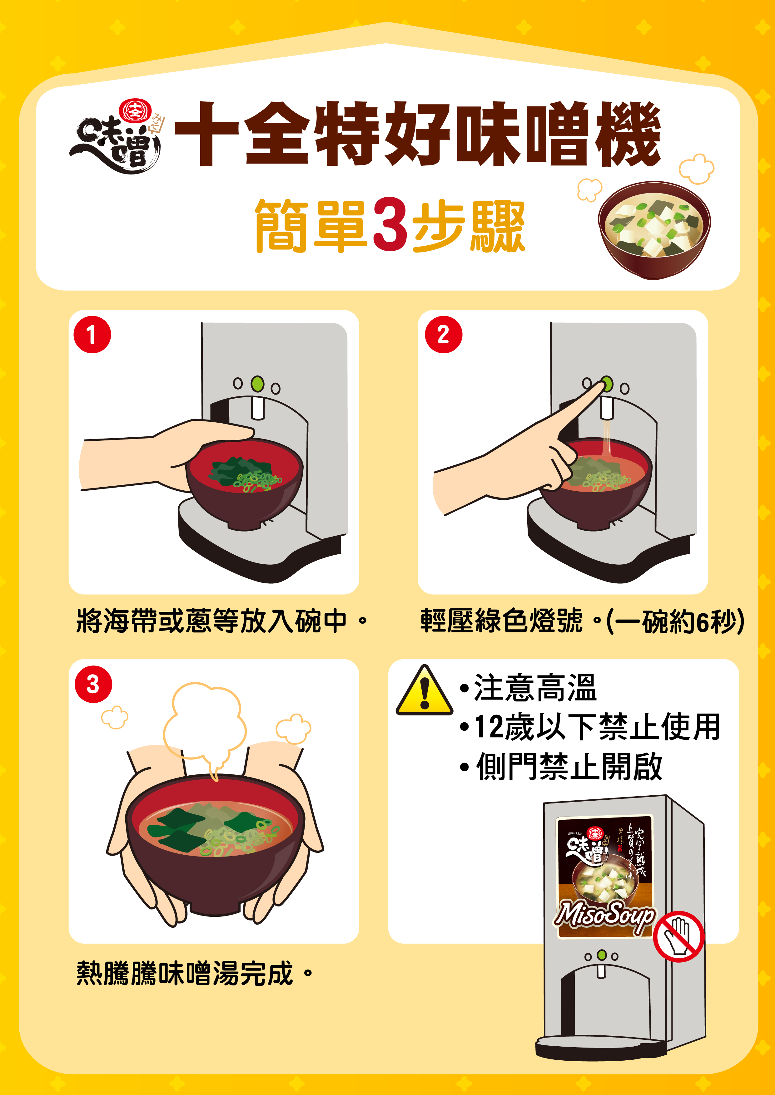 味噌機能快速供杯,提高出餐率,取代人工煮湯,降低人事費用,不僅湯頭口味統一,也不會產生剩餘湯料,操作簡單,輕易上手,非常適合店家使用。
